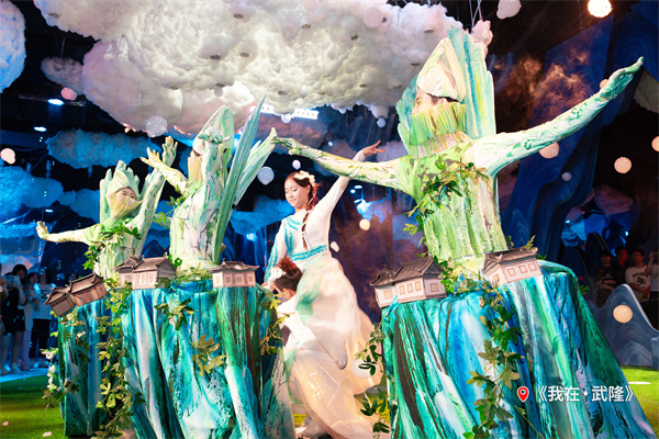 晚間觀看《印象武隆》演出,在川江號子的激昂旋律中感受巴渝文化底蘊 ;觀看《我在·武隆》演出,從云端漫步到山間徜徉,深入了解武隆喀斯特地貌奧秘。