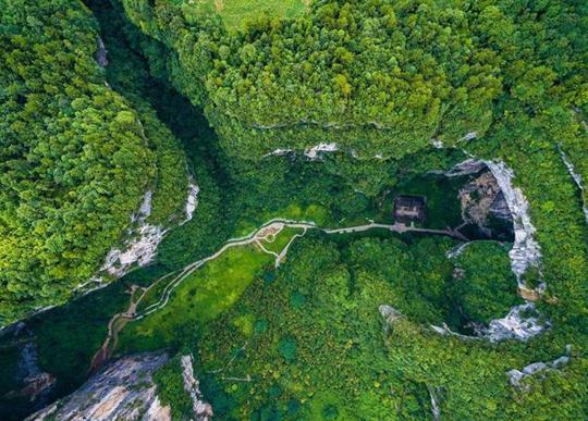 《爸爸去哪兒2》武隆拍攝地,與武隆天生三橋、印象武隆毗鄰,是“武隆喀斯特”世界自然遺產的重要組成部分。天坑寨子擁有舉世無雙的姊妹天坑,中石院天坑是世界上口部面積最大的天坑,因其輪廓形似愛心,擁有“大地之心”的美譽。除了觀賞絕美的自然風光,還有原始的土家族村落、特色建筑、民俗風情濃郁,天坑里的寨子避世而居,宛如世外桃源。