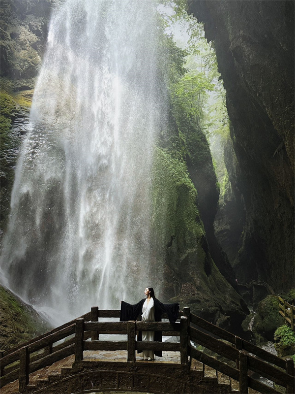 一線天光、銀河飛瀑、蛟龍寒窟……無不體現出龍水峽地縫的險奇幽絕,沿著蜿蜒的棧道深入谷底,仰望一線藍天,峰矗云涌,飛瀑流泉,洗滌心靈,頓覺忘卻煩憂,找到真實的自己。